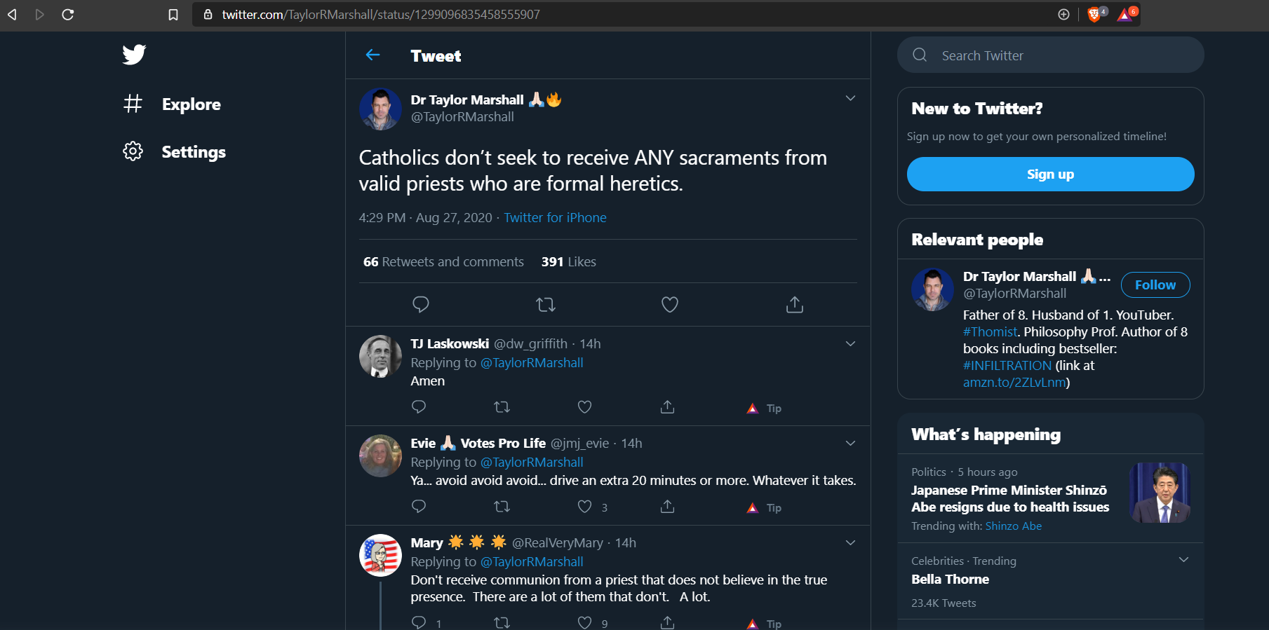 For my part, I wish to say the following to Taylor Marshall: