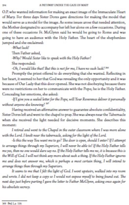 When Fr. McGlynn was working with Sr. Lúcia (then Sr. Dores), he mentioned to her that he was going to Rome and will meet with the Holy Father (Pius XII). She asked him if he would give a letter to the Pope on her behalf, but requested to keep secret the fact of the letter. He agreed. She wrote the letter and gave it to McGlynn, who, in turn, gave it to the Holy Father