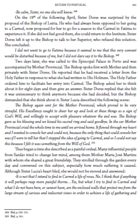 The letter was a request to enter the Carmelite Order, which Pius XII granted. Sr. Lúcia highly displeased Bishop José da Silva by this act. As she did nothing wrong, however, the Bishop was able to facilitate her entrance to the Carmel in 1948.