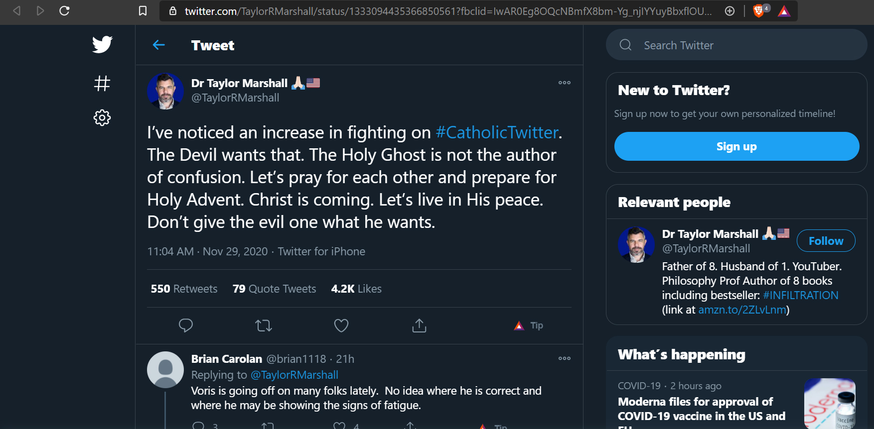 I’ve noticed an increase in fighting on #CatholicTwitter. The Devil wants that. The Holy Ghost is not the author of confusion. Let’s pray for each other and prepare for Holy Advent. Christ is coming. Let’s live in His peace. Don’t give the evil one what he wants.: